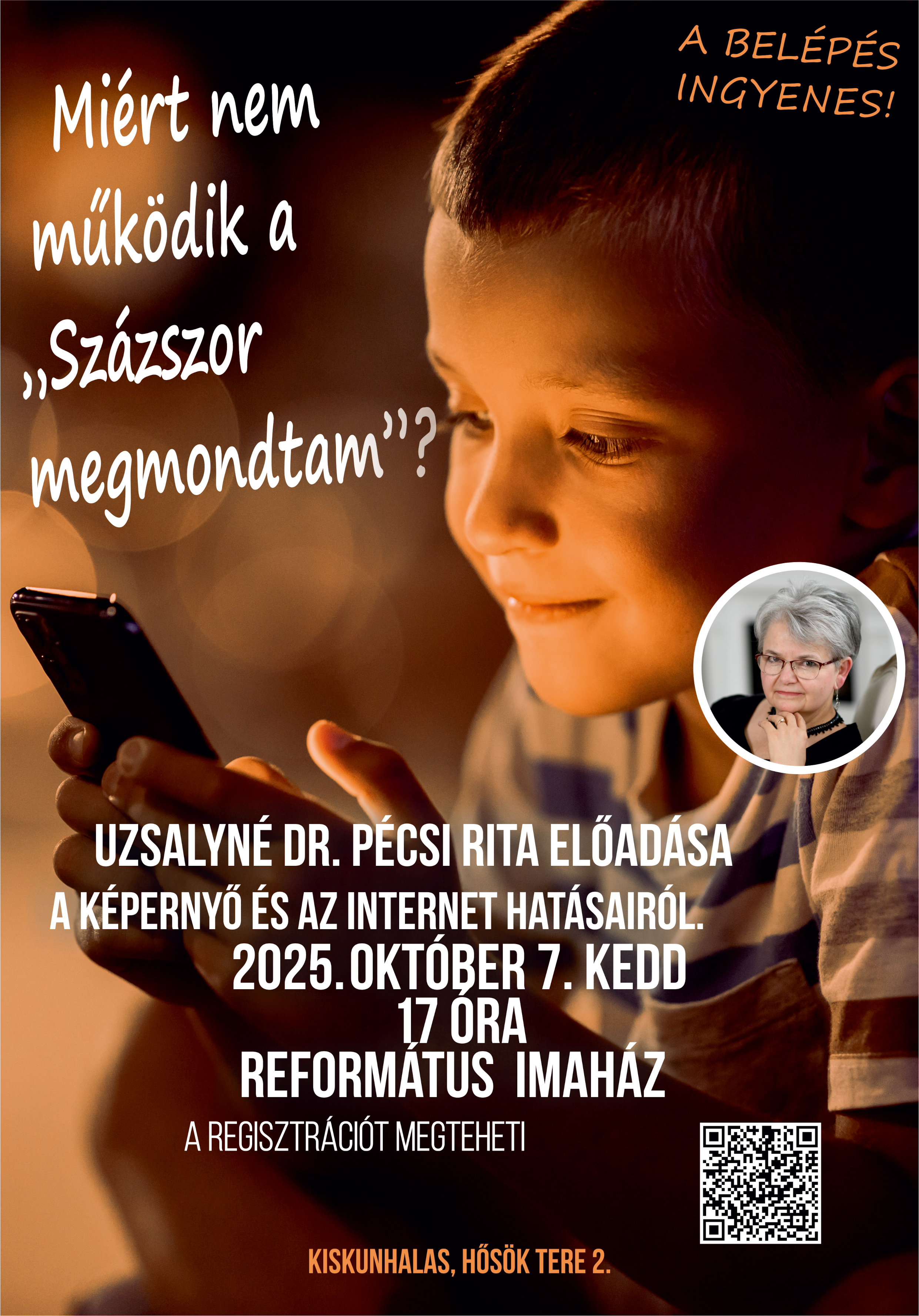 Miért nem működik a százszor megmondtam? Helyszín: Református Imaház Dátum: 2025. október 7. Időpont: 17:00 Plakát letöltése Jelentkezés Az eseményről Kedves Szülők! A KRK Központi Általános Iskola előadást szervez Uzsalyné dr. Pécsi Rita neveléskutató előadásában a gyermeknevelés nehézségeivel kapcsolatban. Várjuk az óvodás, általános iskolás és gimnazistagyermekek, anyukáit, apukáit, de a nagyszülőket, pedagógusokat is! Az előadás témája: Miért nem működik a "Százszor megmondtam??" A sikeres nevelés kulcsa: Az érzelmi intelligencia fejlesztése „Akarom a jót és teszem a rosszat" - Miért van ez így? Mire való az érzelmi intelligencia? Mit kezdhetünk az öröklött adottságokkal? Miért nem működik, pedig százszor is elmondjuk? Mekkora az IQ szerepe az életben való boldogulásban? Hogyan fejleszthető az érzelmi intelligencia? Az előadás ingyenes, de regisztrációhoz kötött! Regisztrálni a "Jelentkezés" gombra kattintva lehet!