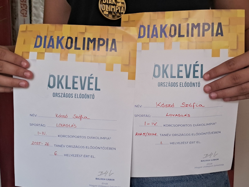 Diákolimpia-lovaglás Írta: Boross Helga Hírek 346 Az idei, 2025-2026-os tanév egyik újdonsága, hogy a Diákolimpiát lovaglás sportágban is megrendezik. A kiskunhalasi lovasoknak nem kellett messzire menniük az első selejtezőre, hiszen a Hirling József Lovasparkban versenyezhettek. A Lovasbandériumot és a Központi Református Iskolát Kószó Szófia (7.b) képviselte, aki remek lovaglással két kategóriában is az országos döntőbe jutott! A budapesti versenyre kategóriánként az első 10 lovas juthat, így Szofi mindkét eredménye döntőt ér: Díjugratás Diákolimpiai selejtező 14 éves korig, 90 cm 1. helyezett Kószó Szófia lova: Fernandó Ferkó, Kiskunhalasi Lovasbandérium SE Ügyességi kategória Diákolimpiai selejtező 14 éves korig 6. helyezett Kószó Szófia lova: Csöpi, Kiskunhalasi Lovasbandérium SE Sok szeretettel gratulálunk Szofinak és a Bandériumnak! További sikereket kívánunk a döntőben is!