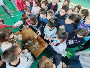 Mézes-méhes interaktív óra Írta: Szaszki-Farkas Gabriella Hírek 108 November 20-án az 5. évfolyam egy rendhagyó foglalkozáson vehetett részt, amelynek főszereplői a méhek voltak. Ragadics Nándor látogatta meg iskolánk tanulóit. Volt pedagógus kollégánk, ahogy a gyerekek hívják, Nándi bácsi, testközelből ismeri a méhek minden titkát, hiszen maga is méhész. Adott volt tehát, hogy a gyerekek egy olyan ember szemén keresztül ismerjék meg a méheket, aki nap mint nap találkozik velük és gondoskodik róluk. A méhek fontos szereplői az emberek uralta világnak, és egyre nagyobb hangsúlyt kell fektetnünk a védelmükre mint fő beporzó fajokra. A hideg beköszöntével egyre többen fogyasztunk mézet, ami az egyik legfontosabb természetes immunerősítő forrásunk. A mézelő méheknek nagyon sok energiájukba kerül előállítani 1 kg mézet, aminek mi jótékony hatását élvezhetjük. Sajnos a globális felmelegedés és az emberi tevékenység következtében az ő létezésük is veszélybe került. Szó volt arról is, hogyan épül fel a méhek társadalma és hogyan készül a méz. Ilyen és ehhez hasonló témákról beszélgettek a tanulók Nándi bácsival, aki a foglalkozás végén kóstolót is tartott a gyerekeknek. Köszönjük ezúton is neki az előadást és a bemutatót! https://www.facebook.com/media/set/?vanity=kozponti.net&set=a.1705745704052834